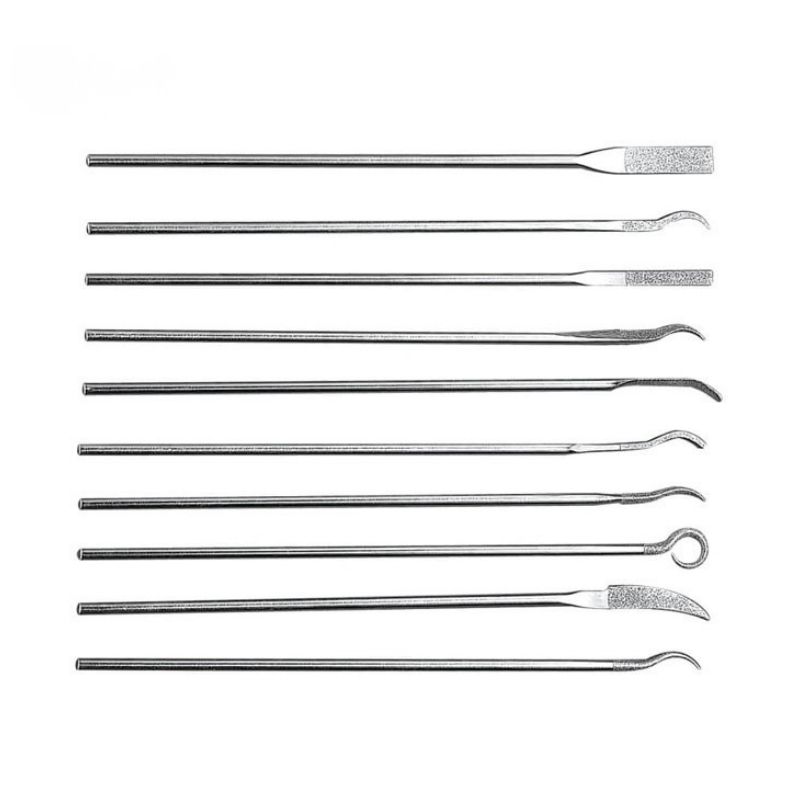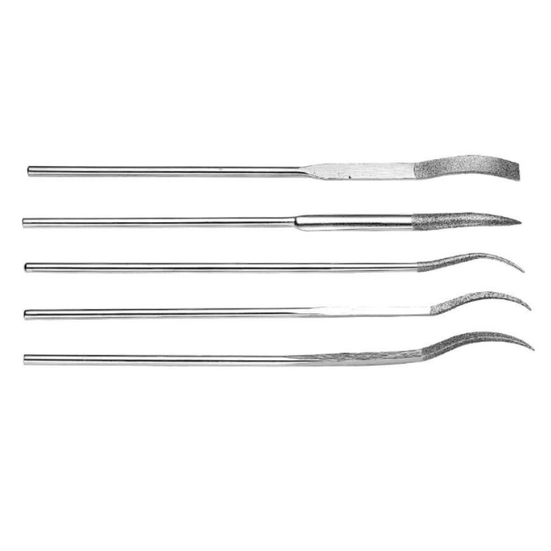 - Nguyên tắc “Lực tì đòn bẩy”: Do thiết kế đầu cong, dũa có xu hướng tập trung lực tại điểm uốn. Tuyệt đối không ấn mạnh đầu mũi dũa vào rãnh hẹp vì sẽ gây hiện tượng “mỏi kim loại”, dẫn đến gãy lõi thép. Hãy để độ sắc của hạt kim cương tự ăn vào phôi bằng lực đưa tay nhẹ nhàng.