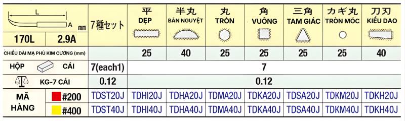 | Bộ Dũa Kim Cương Dẹp #200 TDHI40J | TDHI40J | Dẹp | 170L*2.9A |