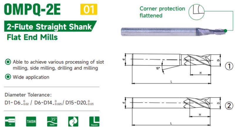 THÔNG SỐ KỸ THUẬT DAO PHAY NGÓN PHẲNG 2 ME OKE OMPQ-2E