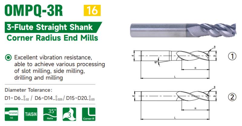 THÔNG SỐ KỸ THUẬT DAO PHAY NGÓN PHẲNG 3 ME OKE OMPQ-3R