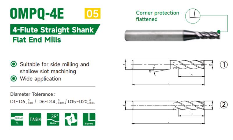 THÔNG SỐ KỸ THUẬT DAO PHAY NGÓN PHẲNG 4 ME OKE OMPQ-4E
