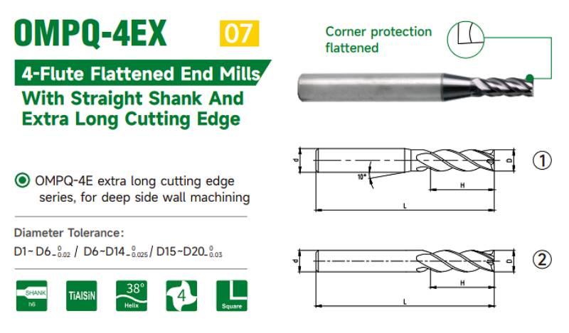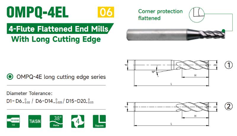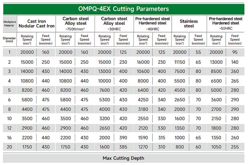THÔNG SỐ KỸ THUẬT DAO PHAY NGÓN PHẲNG 4 ME OKE OMPQ-4EX