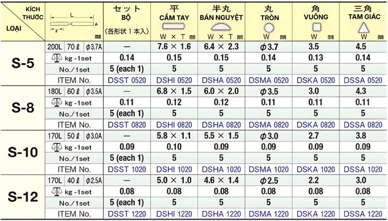 | Dũa Kim Cương Dẹp S-12 #200 DSHI1220 | DSHI1220 | S-12 (#200) | 170L*40ℓ*φ2.5A |